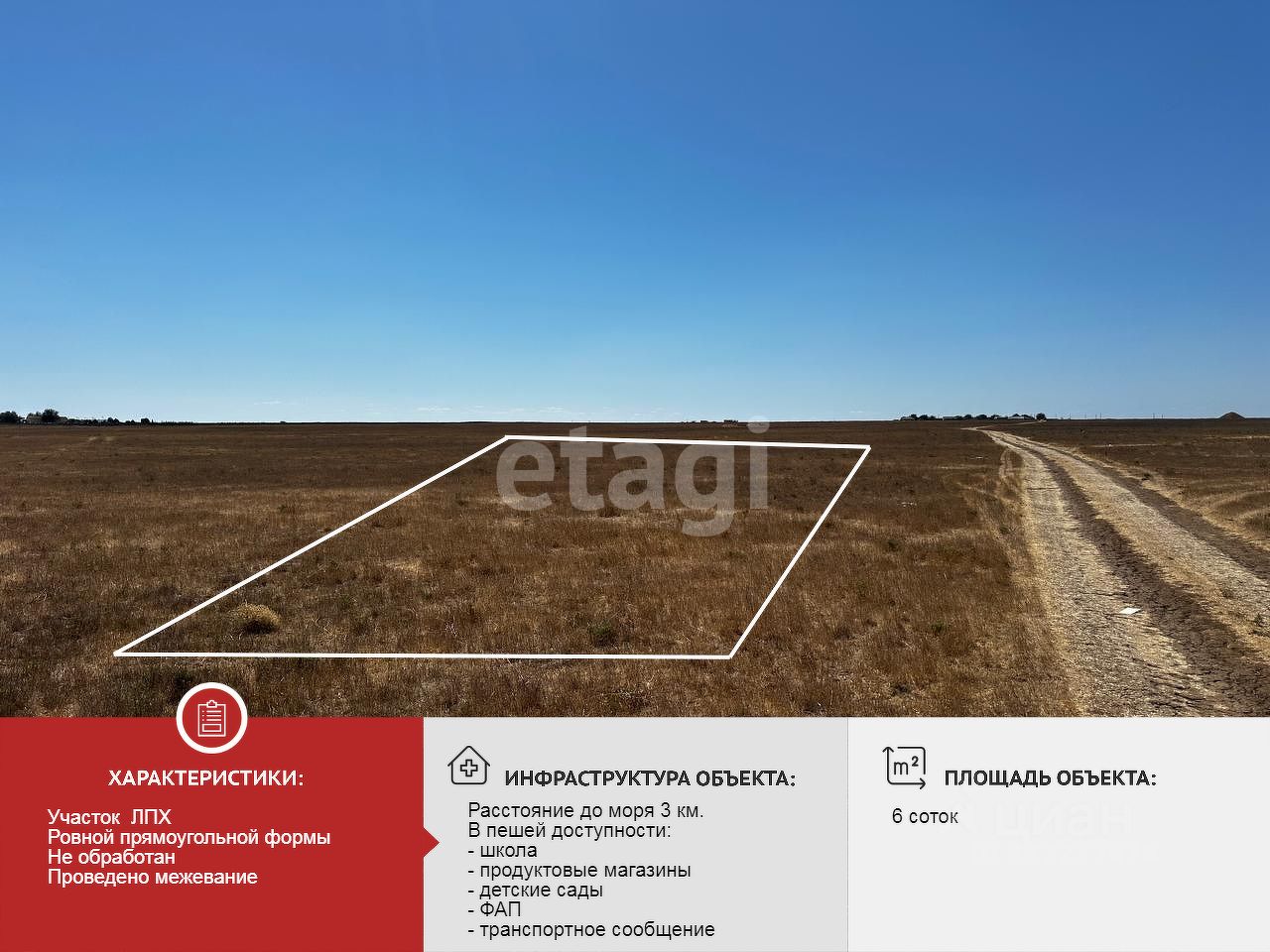 Участок имеет категорию земель - земли сельскохозяйственного назначения, вид разрешенного использования - ведение личного подсобного хозяйства (ЛПХ) на полевых участках. Является одним в перспективных мест для вхождения в состав населенного пункта. До коммуникаций 200м и более, в зависимости от близости участка к дороге. Скважина 20-25 метров.