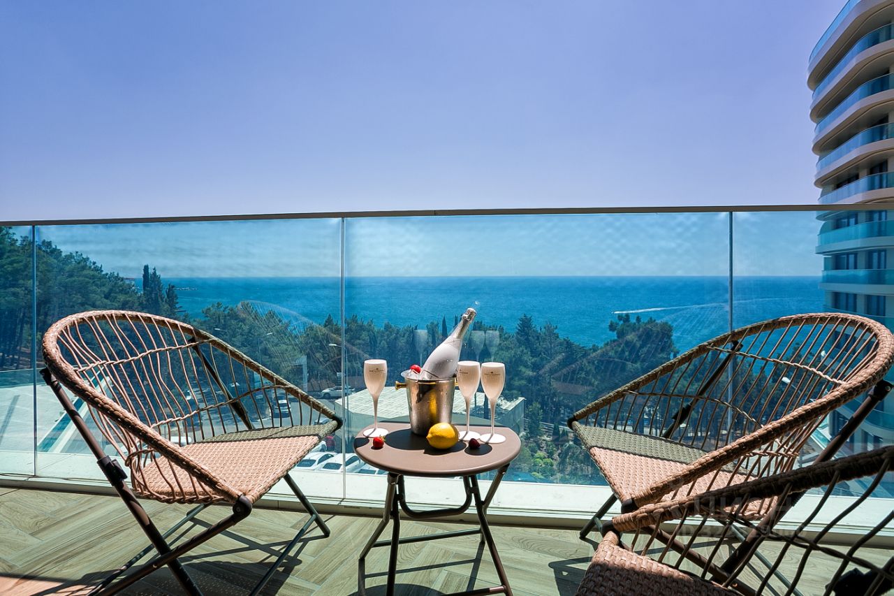 до 4 человек (кровать и диван раскладной) + санузел + терраса с видом на море.