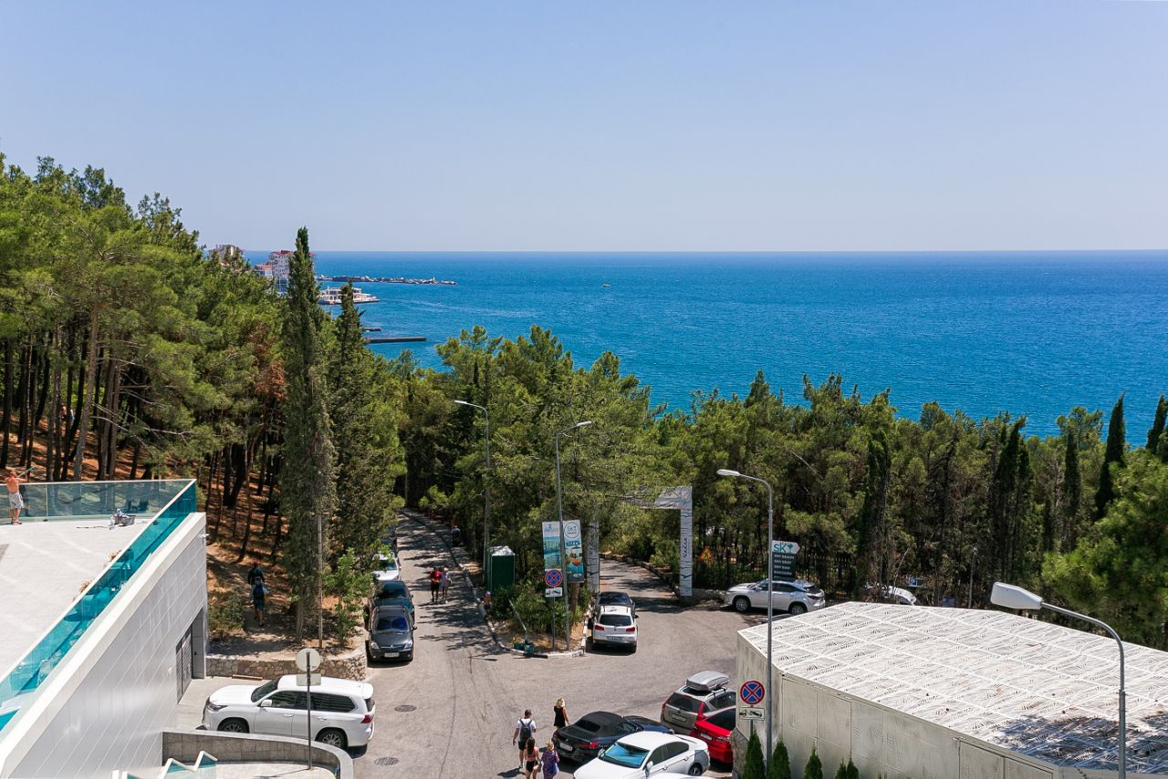 4 минуты - отель Ялта интурист в нем можно за доп плату.