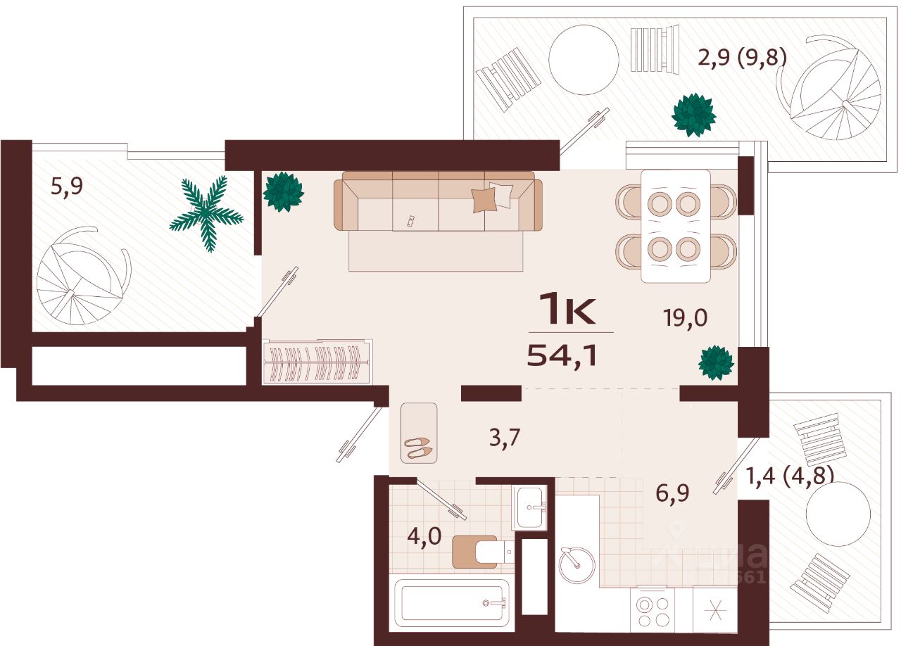 Общая площадь54,1 м2