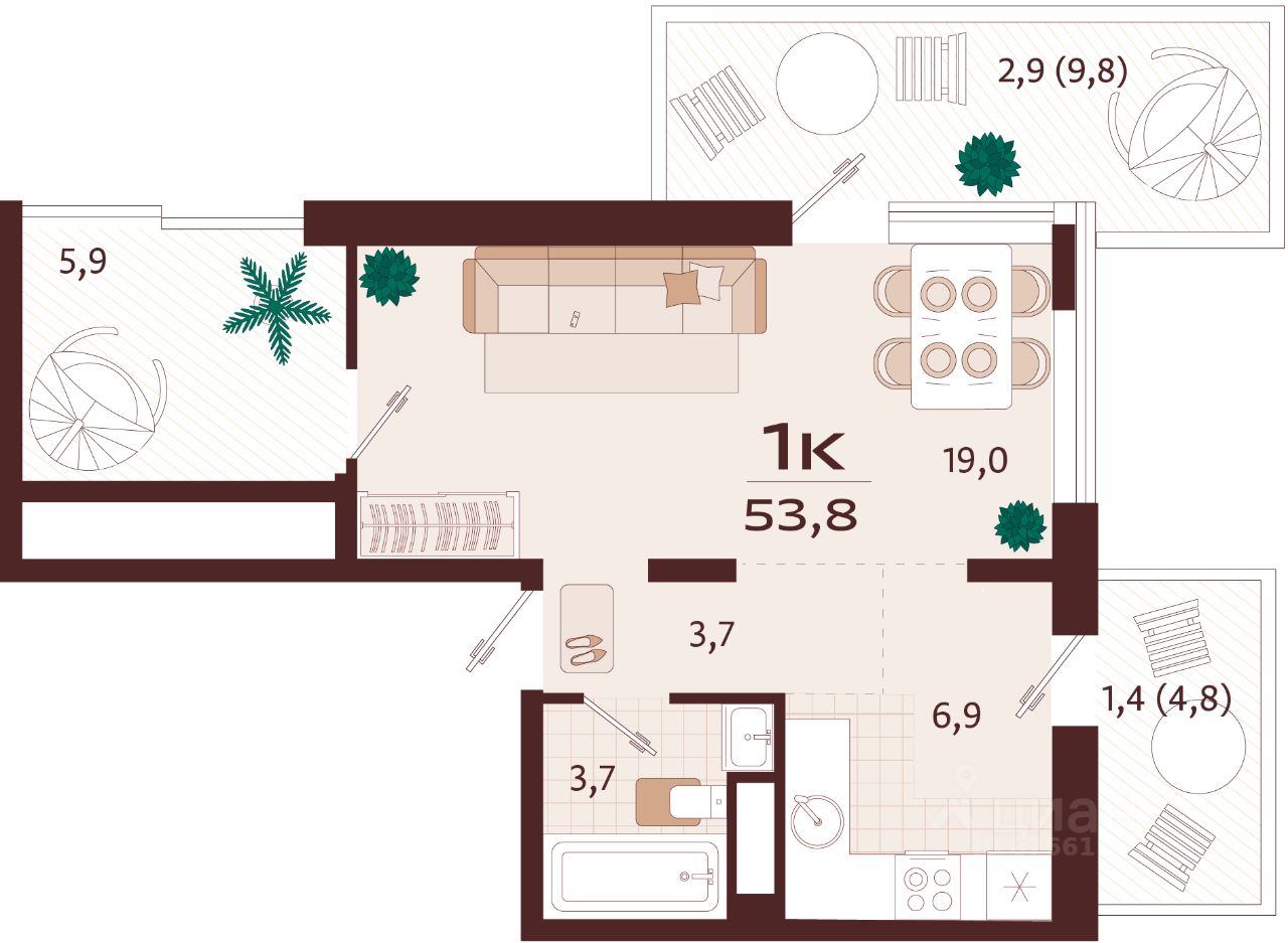 Продаётся 1-комнатная квартира в строящемся доме (Корпус 3), срок сдачи: II-кв. 2027, общей площадью 53.8 кв.м., на 4 этаже. Жилой комплекс бизнес-класса ''РОЯЛТА'' от застройщика ''ГК ТОЧНО'' в городе Ялта Республики Крым на улице Спендиарова.