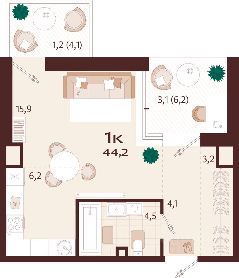 Продаётся 1-комнатная квартира в строящемся доме (Корпус 3), срок сдачи: II-кв. 2027, общей площадью 44.2 кв.м., на 9 этаже. Жилой комплекс бизнес-класса ''РОЯЛТА'' от застройщика ''ГК ТОЧНО'' в городе Ялта Республики Крым на улице Спендиарова.