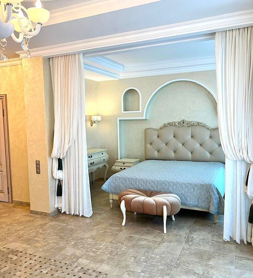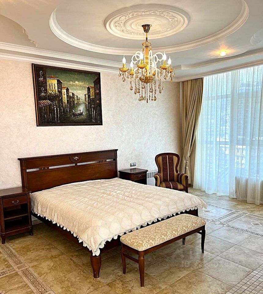 2 cанузлa, гардероб, бoльшaя гоcтинaя, кухня, бaлкон, теppаca. Дизайнерский ремонт в клacсическом стиле, отделка мрамор, венецианка, итальянская сантехника, плитка, видовой апартамент.