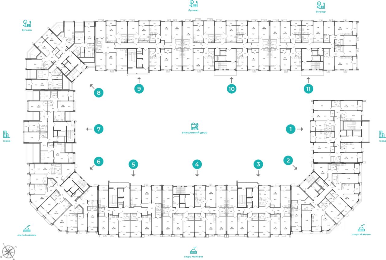 Кварталы спроектированы по принципу ''город в городе'': • удобные планировки квартир с панорамными окнами и верандами, • приватные дворы без машин, с зелёными аллеями и местами для отдыха, • пешеходные и велосипедные маршруты, связывающие жилые зоны с набережной и инфраструктурными центрами.