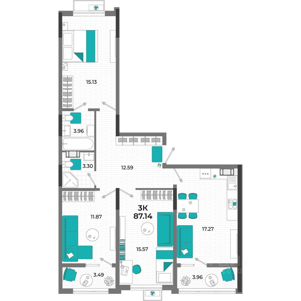 Общая площадь87,14 м2