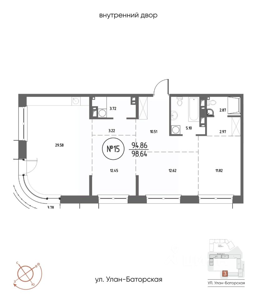 Продаётся 3-комнатная квартира в строящемся доме (Дом 3), срок сдачи: III-кв. 2029, общей площадью 98.64 кв.м., на 4 этаже. Мы начали с эталона - жилого комплекса Союз Priority, лучшего в России. А теперь представляем его логичное и яркое продолжение Союз Priority MAX.