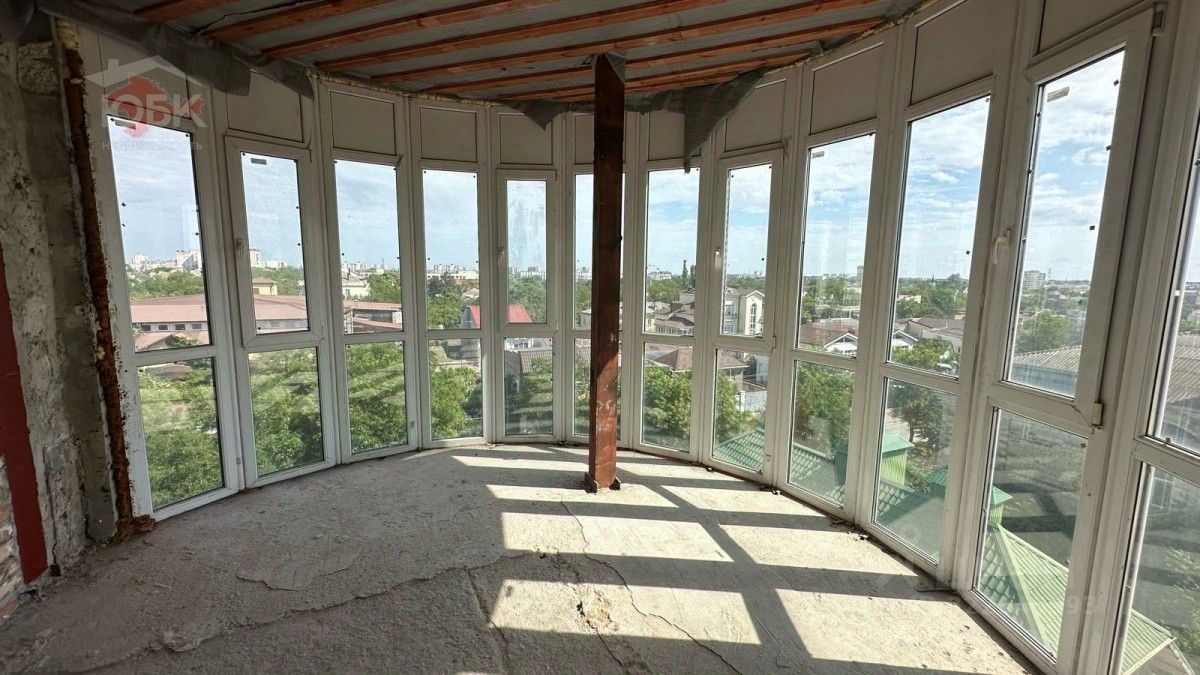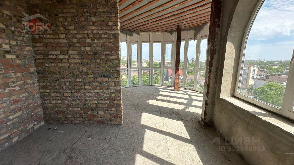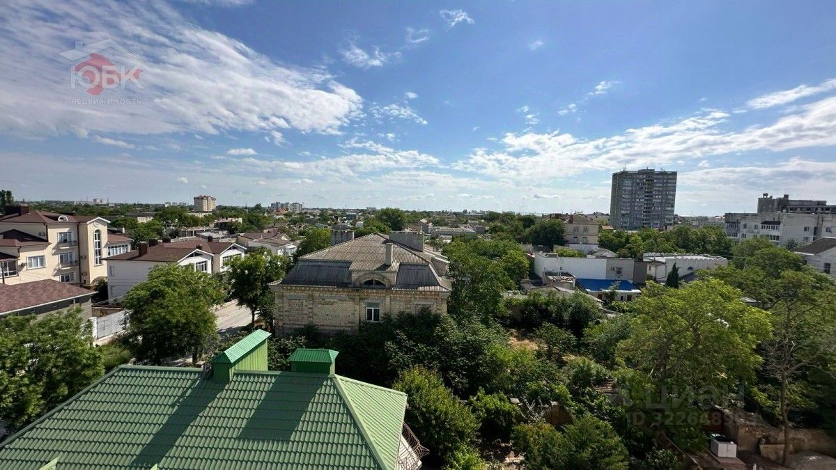 В студии требуется ремонт. Большие панорамные окна выходят на зеленый двор и море.