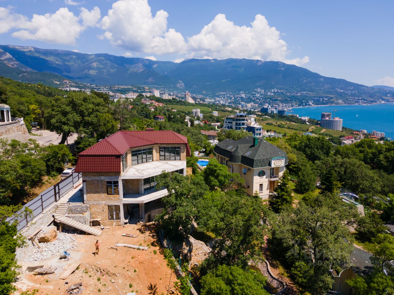 Дом расположен в непосредственной близости к Ливадийскому дворцу. Очень тихое, уединенное место. Вид на море, панорамное остекление.