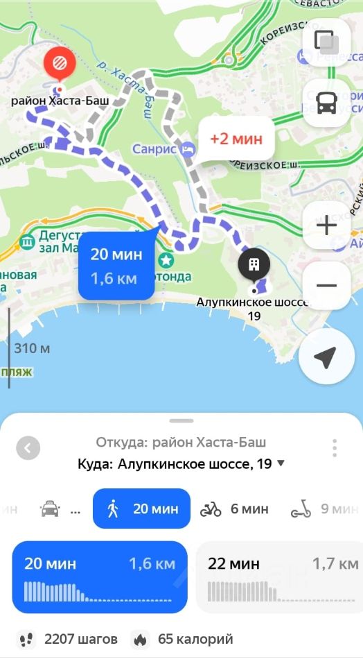 Расстояние до моря по прямой 630 метров, пешком 1,6 км или 20 минут, до выезда на Южнобережное шоссе 2,7 км, до Ялты 14 км.