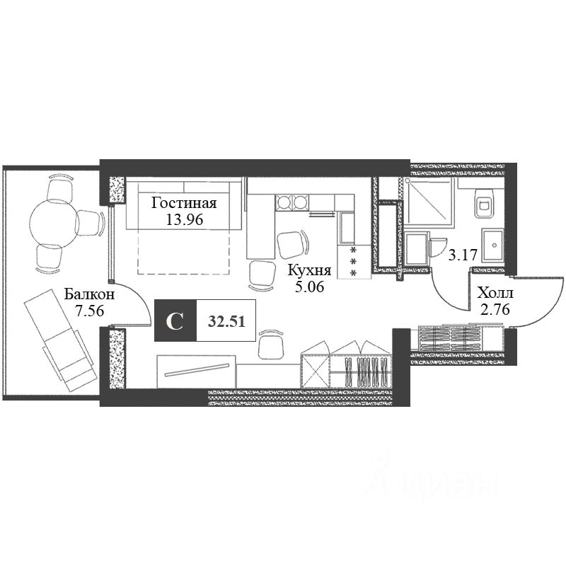 Предлагаем апартаменты студийного формата (32.58 м²) на 3 этаже апарт-комплекса Бизнес-класса Крымская Резиденция во 2 корпусе Пушкин - панорамный вид на горы!
