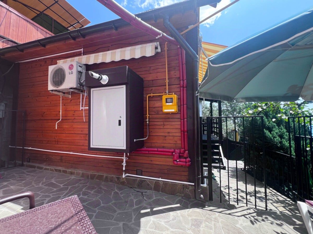 Коммуникации: водоснабжение, электричество, канализация, централизованное, заведено газоснабжение, установлен газовый котел для отопления. Локация: до Ялты 15 км, до магазина 50 м, до остановки 300 м, до моря 800 м.