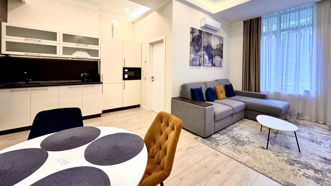В продаже апартаменты с РЕМОНТОМ в одном из лучших клубных домов Крыма Дача Доктора Штейнгольца. Комплекс находится в Приморском парке Алушты и рекреационной зоне в 30 метрах от пляжной зоны. Апартаменты расположены на втором этаже дома, площадь - 66 кв.м. Планировка: коридор-прихожая 3 кв..м санузел 5 кв..м кухня-гостинная с 25 кв.м спальня с выходом на балкон 12 к.м. балкон 10 кв.м Дизайнерский ремонт, полная комплектация мебелью и техникой. Высота потолка 3,2 м.