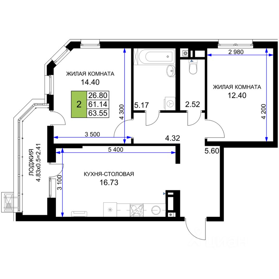 продам 2-к, Воронежская, 47/3914 155 762 ₽