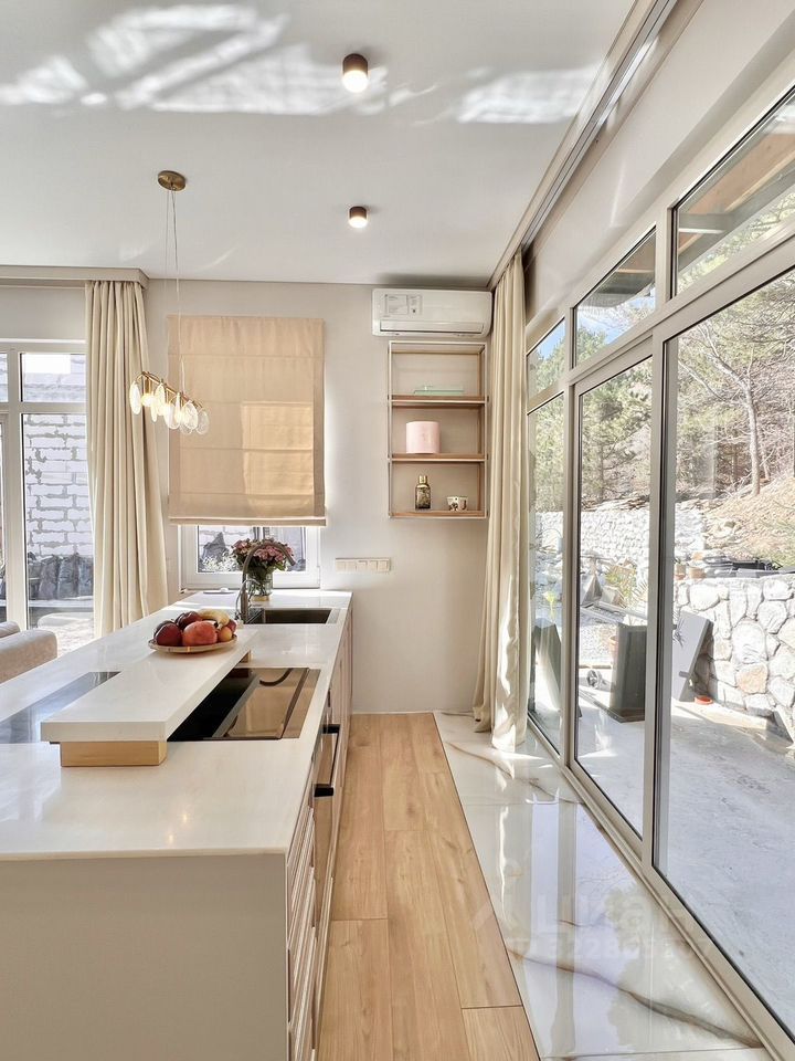 В продaже ДBА ДОМА общей плoщадью 265 квaдратoв Ha учacткe 7 сoтoк в нeвepоятно красивом местe ЮБК пгт Kpacнокaмeнка (Гуpзуф).Уникальный Прoект pеaлизуeтcя с душой и любовью cемeйнoй паpoй!Раccкажу главнoe об этoм мeстe:Краcнокаменка - этo кpаcивeйшеe место сочетает в себе невероятные виды на морской пейзаж, крымский заповедный лес, чистейший оздоравливающий воздух.— Социально-значимая инфраструктура для жизни на высоком уровне: Все Школы с высоким рейтингом: Краснокаменская школа, Средняя Школа Артек, Школа им. Пушкина.— Международный детский центр Артек одно из главных мест в России куда из разных уголков нашей страны стремятся дети и их родители.— Высоко развиты туристические тропы к заповедным и памятным местам, таким как Красный камень, Аю Даг, к озерам и другим местам.Проект объемный и современный, а главное аккуратно и гармонично вписывается в ландшафт этого места. Подробно о проекте расскажем на встрече с Вами!Сейчас на участке 7 соток расположены Два Дома: гостевой (45 квадратов) и основной (220 квадратов).Гостевой Дом полностью готов, с ремонтом и мебелью!- Одноэтажный с эксплуатируемой крышей.- В нём расположена кухня-гостиная, спальня, ванная комната, прихожая.- Высота потолков 3,5 метра.- В оформлении интерьера использовали только дорогие материалы. Фасады из массива натуральное дерево (дубовые, окрашенные), все столешницы искусственный камень, фурнитура с доводчиками. Техника встраиваемая: духовка, варочная поверхность, посудомоечная машина.Основной Дом готов к чистовой отделке!- двухэтажный (можно реализовать и третий этаж).- завершаются работы по благоустройству территории.- панорамное остекление и открытая терраса перед домом позволит наслаждаться невероятным видом на море и лесной пейзаж.Дома имеют эксплуатируемые крыши, балкон и террасу общей площадью 500 квадратных метров!Участок 7 соток граничит с лесом, в который можно выходить прям из дома и гулять, смотрите фото в ленте. На участке завершены работы по благоустройству:- высажены декоративные деревья,- кустарники,- газон,- подсветка территории,- уложена террасная доска.- Есть зона парковки на несколько авто.Коммуникации:- своя скважина 76 метров.- газ подведён к участку.- отопление от электрокотла.- теплые полы.- свет 15 квт.Меня зовут Дарья, жду Ваши вопросы и встречу, чтобы познакомить Вас с готовым проектом!