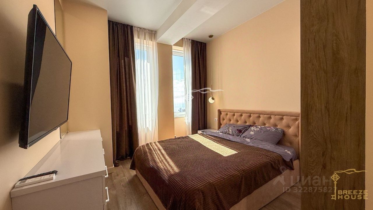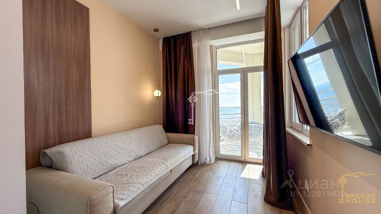 -кухня-гостиная с зоной столовой, -2 светлые спальни с окнами (из одной — выход на открытый балкон с видом на Ялтинскую бухту, море и горы, -совмещённый санузел с душевой, -прихожая.