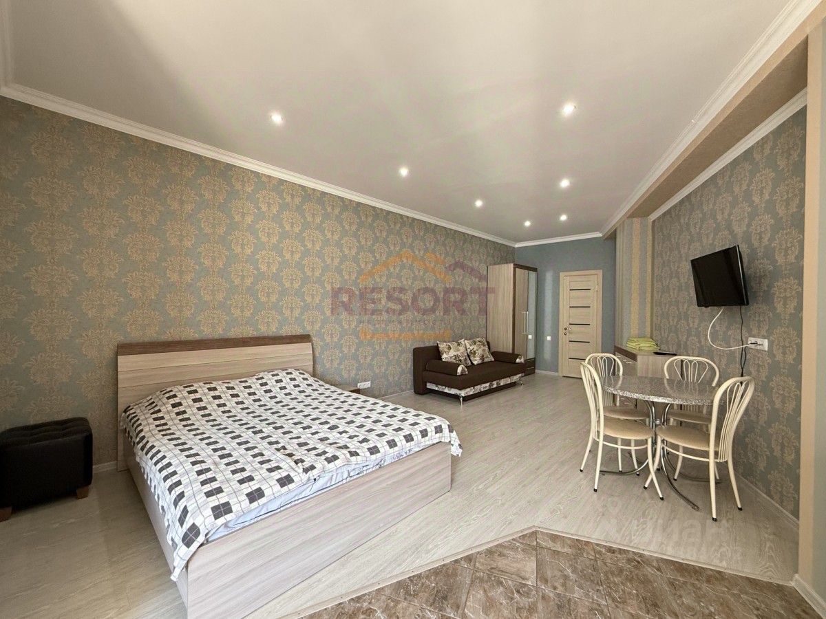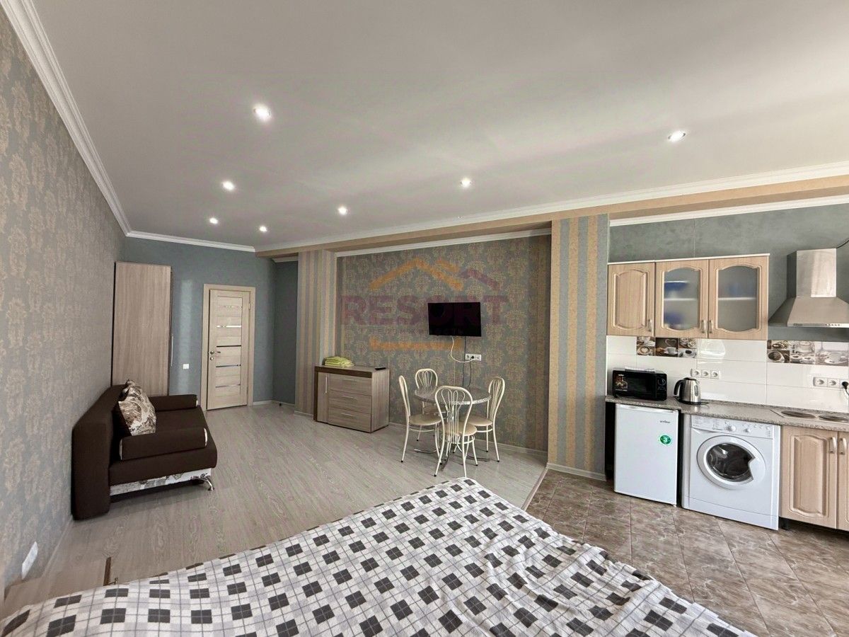 Студии есть кухня, с мелкой бытовой техникой: плита, электрочайник, микроволновая печь, необходимый набор посуды.