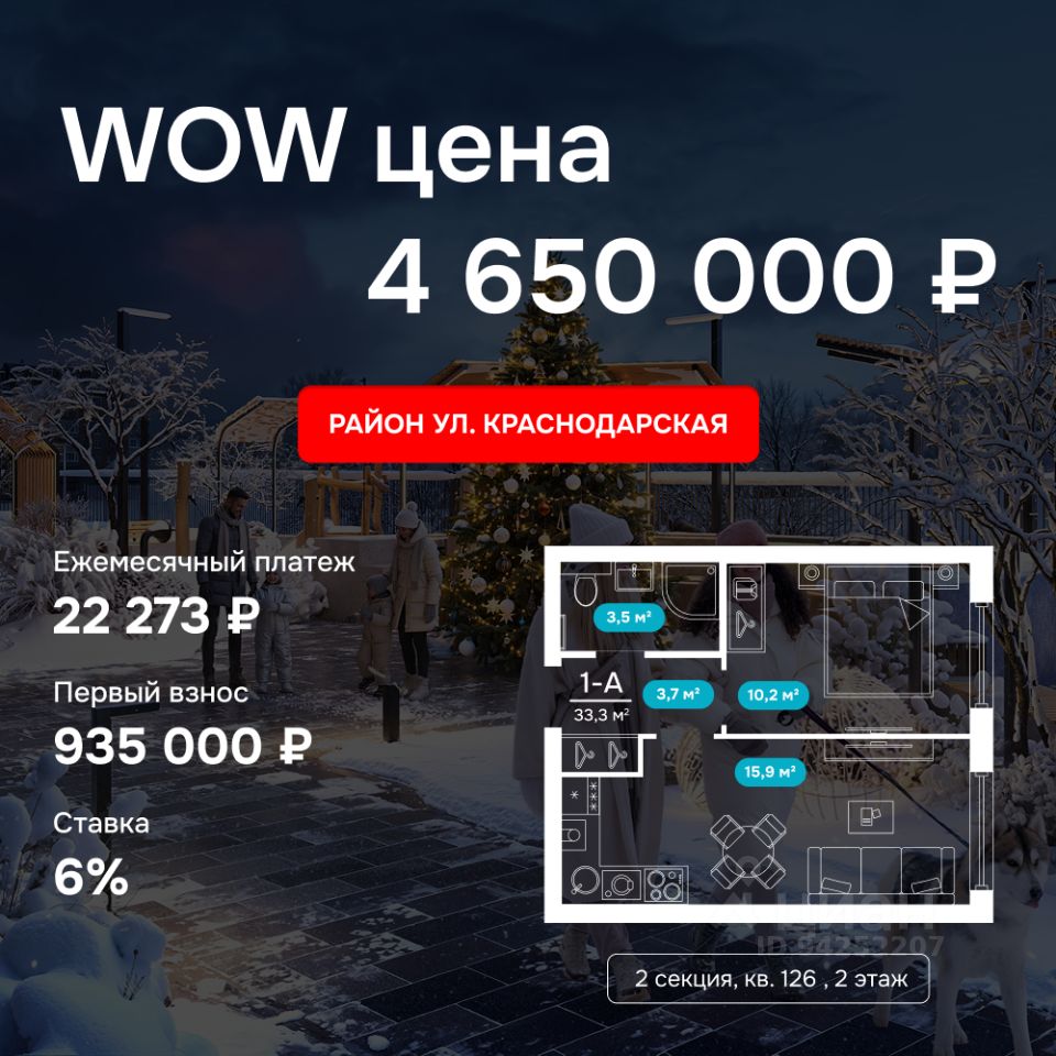 Продаётся 1-комнатная квартира в строящемся доме (Дом 1), срок сдачи: I-кв. 2028, общей площадью 33.33 кв.м., на 2 этаже. Новый жилой комплекс ''Точка'' от застройщика ''Будущее'' расположен по адресу: г. Астрахань, ул. Краснодарской, 43а