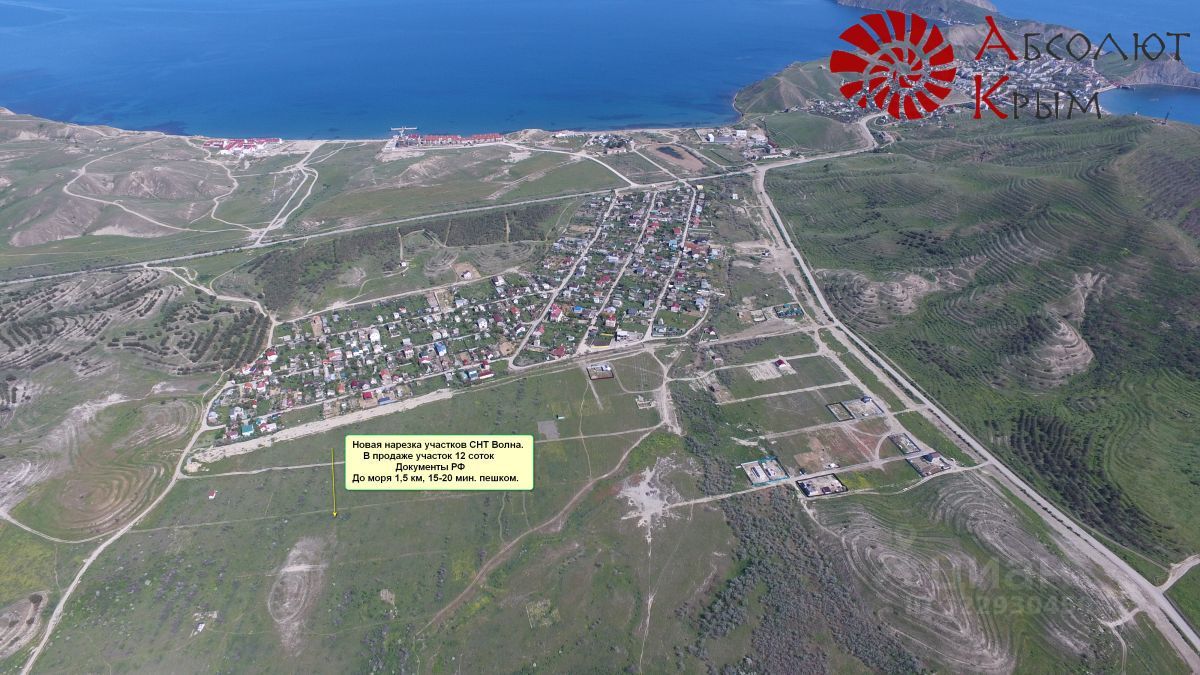 В продаже участок 12 соток, СНТ Волна, пгт. Орджоникидзе. Категория: Земли населенных пунктов. ВРИ: ведение садоводства. Участок достаточно ровный, 30*40 м. Межевание проведено. Без строений, не заросший. Коммуникации: по границе участка труба центрального водопровода, столбы электричества. Документы РФ, 1 собственник. Возможна продажа под все виды расчёта. Новый застраивающийся район, от остановки 7 мин. пешком, ближайшие магазины и инфраструктура в 5 минутах езды на машине и 20-25 мин пешком. Отличное место для постройки домика для отдыха или постоянного проживания. Море в 15 мин пешком, так же к центру поселка. В поселке есть школа, детсад, регулярное транспортное сообщение с Феодосией, к которой 20 км.