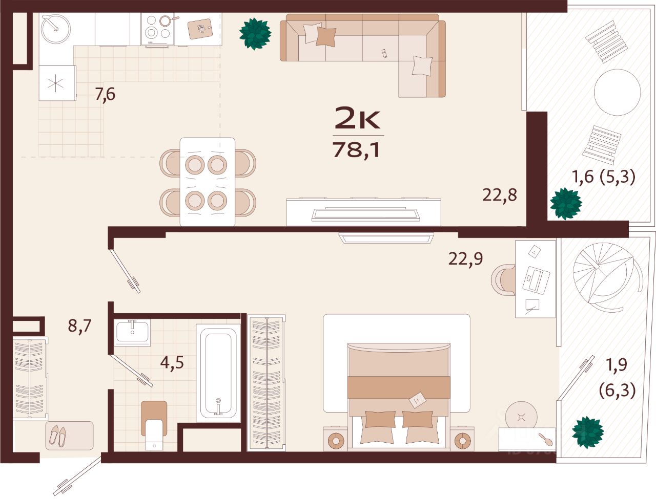 Продаётся 3-комнатная квартира в строящемся доме (Корпус 1), срок сдачи: II-кв. 2027, общей площадью 78.1 кв.м., на 2 этаже. Жилой комплекс бизнес-класса ''РОЯЛТА'' от застройщика ''ГК ТОЧНО'' в городе Ялта Республики Крым на улице Спендиарова.