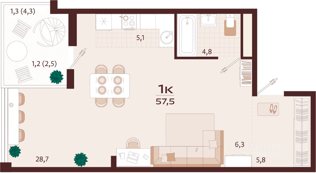 Продаётся 1-комнатная квартира в строящемся доме (Корпус 1), срок сдачи: II-кв. 2027, общей площадью 57.5 кв.м., на 5 этаже. Жилой комплекс бизнес-класса ''РОЯЛТА'' от застройщика ''ГК ТОЧНО'' в городе Ялта Республики Крым на улице Спендиарова.