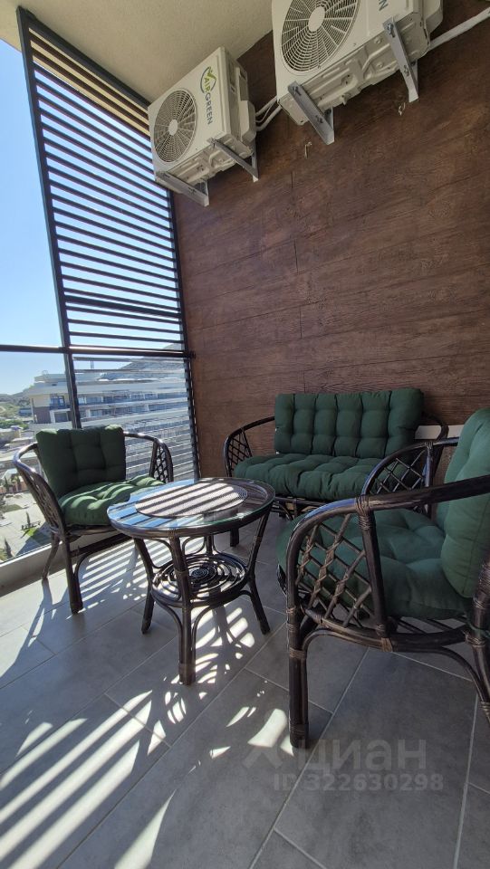 Апартаменты с отдельной спальней. Высокий, последний этаж. Панорамный вид на горы и море. Закрытый комплекс, охраняемая территория. Бесплатная парковка. 5 Бассейнов. Лаундж зоны. Нейродинамичные площадки для детей. . Спа комплекс. Спортзал. Ресторан. Благоустроенный пляж в 30 м. Набережная с развлечениями, ресторанами и кафе. Всего в 2-х мин. у подножия горы ''Алчак'' оборудована мангальная зона с беседками, где можно приятно провести время с друзьями. Об апартаменте: Новый, современный ремонт. Отдельная спальня с кондиционером, телевизором, вместительный шкаф и двуспальная кровать. В гостинной двуспальный, комфортный диван, телевизор. Кондиционер.