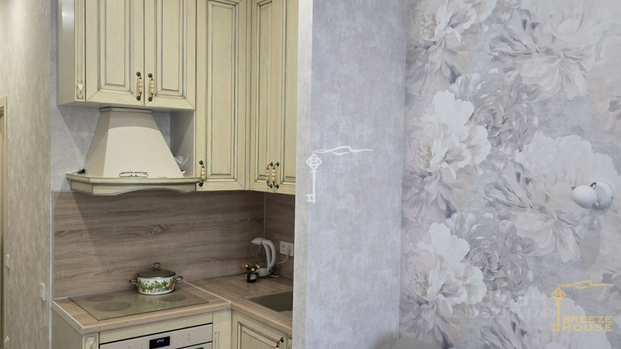В апартаментах выполнен ремонт с использованием качественных материалов. Встроенная кухня оснащена всей необходимой техникой: плита, духовой шкаф, холодильник.