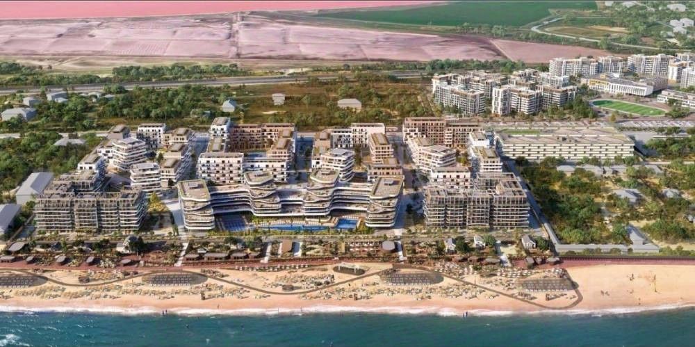 Жилой комплекс ''Розовое озеро'' расположен на западном побережье Крыма между городами Саки и Евпатория. Экологически чистое место находится на косе между Чёрным морем и розовым озером Сасык-Сиваш в непосредственной близости к Сакским лечебным грязевым лиманам. До розового озера 150 м, до песчано-галечного пляжа Черного моря 500 м, до Сакских грязевых лиманов 3,5 км. Комплекс включает в себя строительство детского сада, игровых и спортивных площадок, релакс-зоны и площади с фонтаном.
