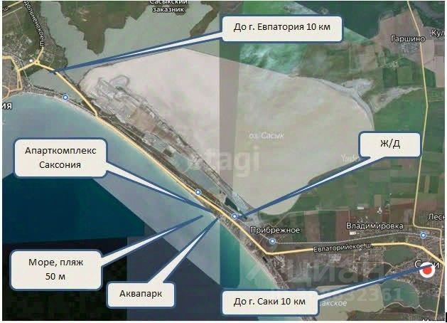 В с. Прибрежное Сакского района, Крым, на побережье Чёрного моря продаются апартаменты. Двухуровневая современная студия, с панорамными окнами, расположена на втором этаже трехэтажного апарткомплекса Саксония. На первом уровне с комфортом для жильцов размещены кухня-гостиная и совмещенный санузел общей площадью 25 кв.м. На втором уровне, скрыта от посторонних глаз, спальня площадью 16 кв.м. В доме подключены электричество и водопровод, автономный септик, домофон, охранный пункт. Крыша эксплуатируемая. На ней разместятся зоны отдыха у двух бассейнов - для взрослых и детей, а так же смотровые площадки на Розовое озеро и Каламитский залив. Отличная транспортная развязка: до г. Саки 10 км, до г. Евпатория 10 км. Аквапарк- 200 м. Песчаный пляж с пологим спуском - 50 м. До автобусной остановки и железнодорожной станции - 800 м. От мечты жить у моря до реальности один звонок! Доп. описание: санузел совмещенный, пластиковые окна, в доме есть: открытый двор, наземный паркинг, без лифта, черновая отделка, также имеются: телефон, интернет, кабельное телевидение, счетчики холодной и горячей воды, домофон, железная дверь Наша комиссия 79000 р.+1% от стоимости объекта, но не менее 70000 р.