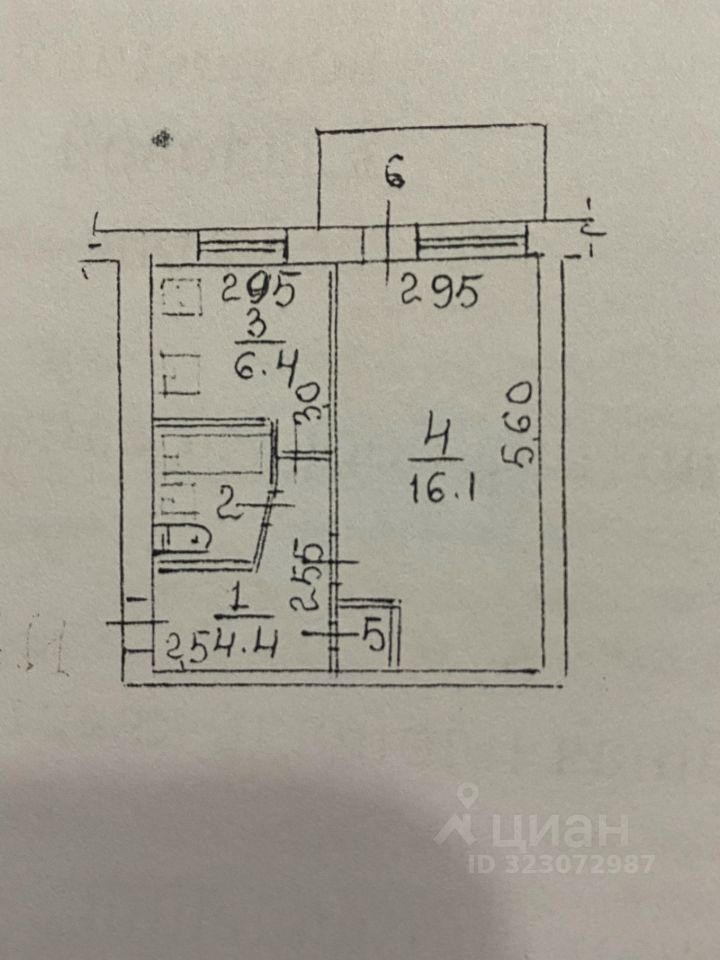 Общая площадь: 31,1 м², жилая 16,1 м², кухня 6,4 м²