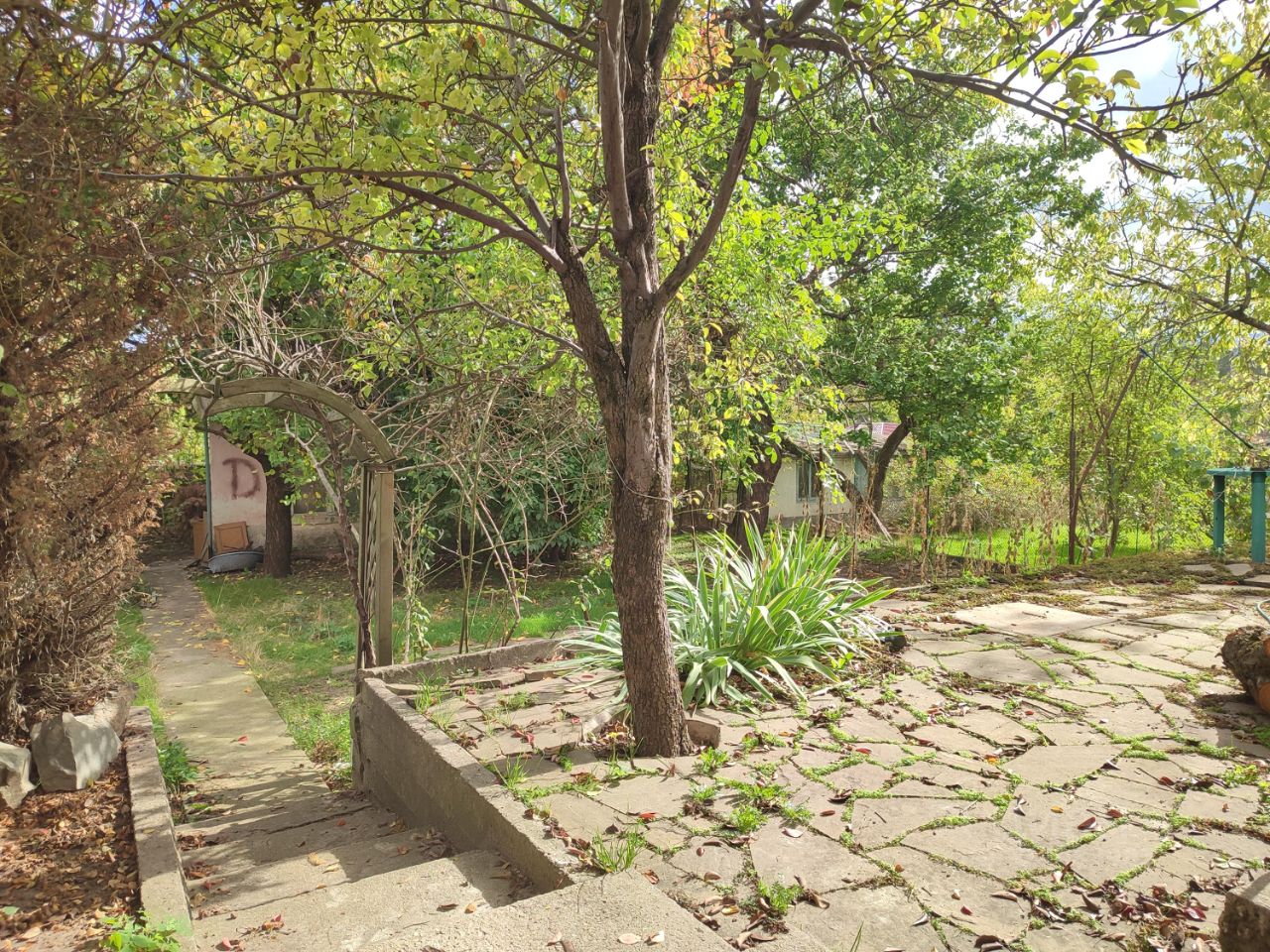 Участок: 5 соток, ИЖС. Удобно терассирован в 2 уровня, за счет этого остаётся много свободной земли под посадку растений. Межевание проведено. На участке капитальный Гараж с ямой, хозблок 30м2, гостевой домик с тёплым полом (требует ремонта).