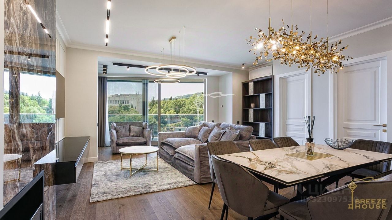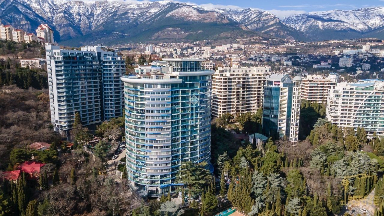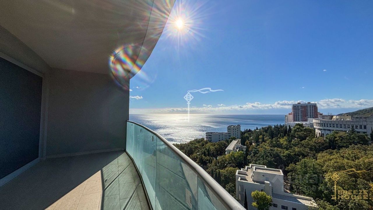 Продаются 4-к. премиум-апартаменты площадью 130,8 м² с видом на горы и город, расположенные на 17 этаже 18-этажного многофункционального комплекса ''Зазеркалье'' в элитном районе г. Ялты - Приморском Парке им. Гагарина.