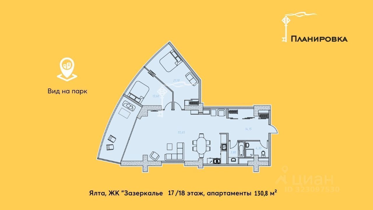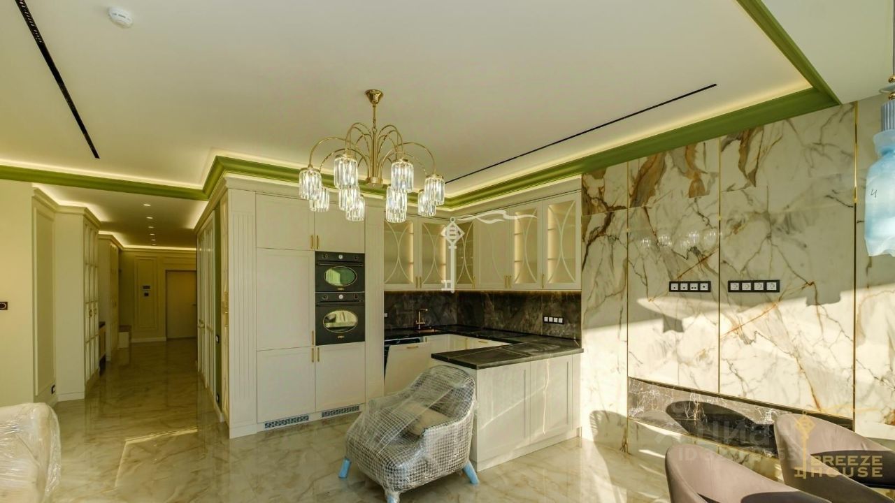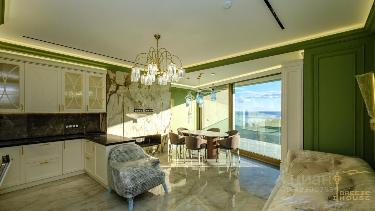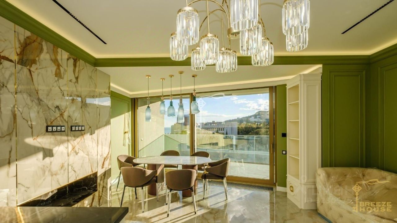 Продаются 4-к. премиум-апартаменты площадью 130,8 м² с видом на горы и город, расположенные на 17 этаже 18-этажного многофункционального комплекса ''Зазеркалье'' в элитном районе г. Ялты - Приморском Парке им. Гагарина.