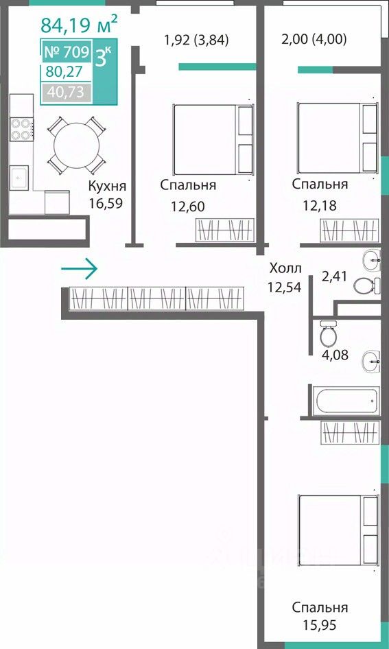 Продаётся 3-комнатная квартира в строящемся доме (Этап 1), срок сдачи: I-кв. 2028, общей площадью 80.27 кв.м., на 7 этаже. Новый жилой комплекс от ГК ''Монолит'' по адресу: Республика Крым, Симферополь, улица Святителя Гурия