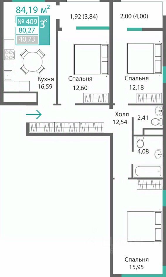 Общая площадь80,27 м2