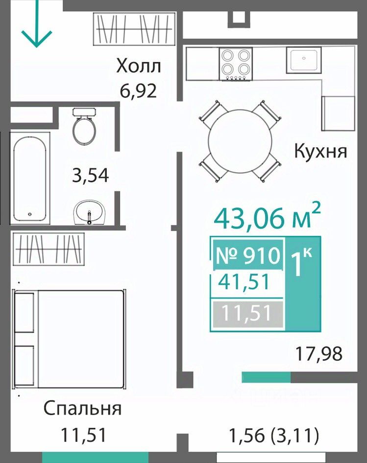 Продаётся 1-комнатная квартира в строящемся доме (Этап 1), срок сдачи: I-кв. 2028, общей площадью 41.51 кв.м., на 9 этаже. Новый жилой комплекс от ГК ''Монолит'' по адресу: Республика Крым, Симферополь, улица Святителя Гурия