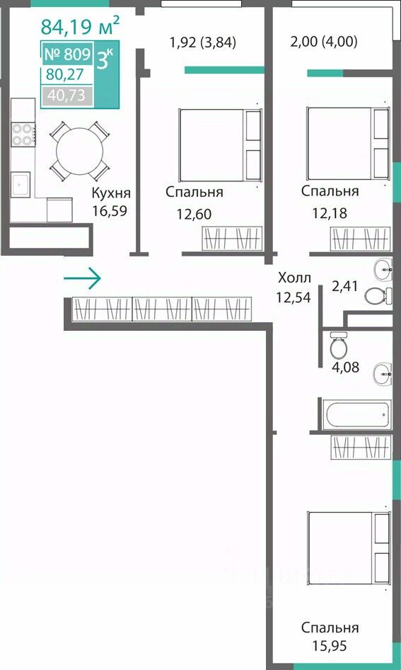 Общая площадь80,27 м2