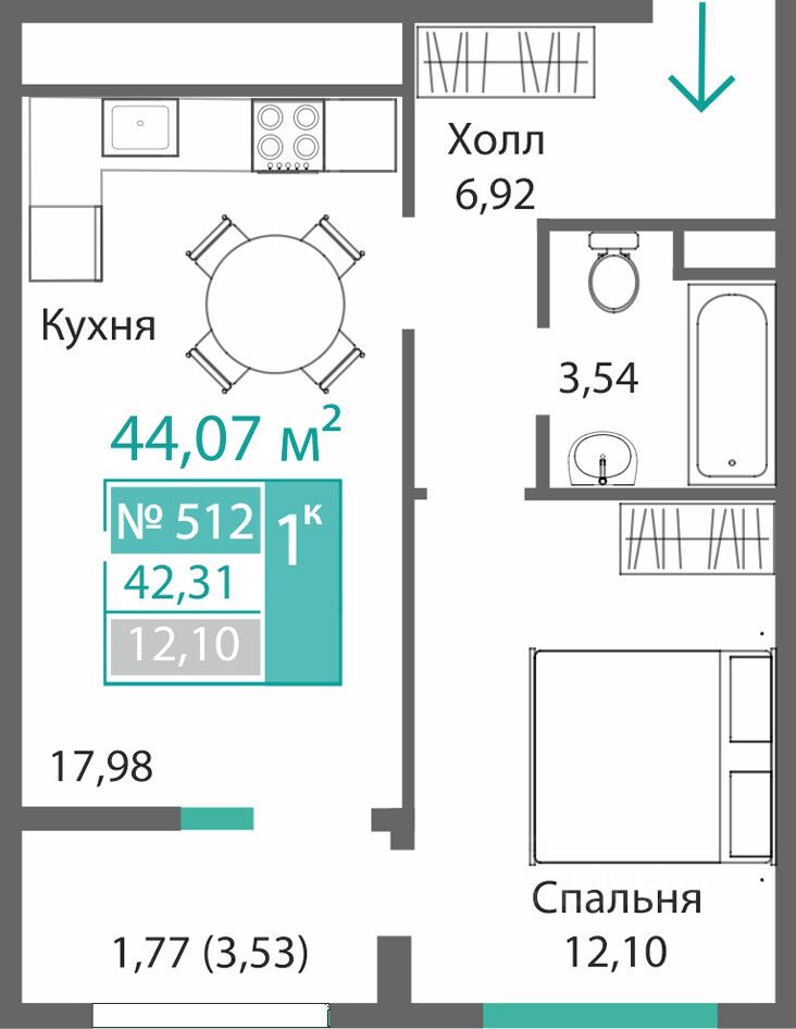 Продаётся 1-комнатная квартира в строящемся доме (Этап 1), срок сдачи: I-кв. 2028, общей площадью 42.31 кв.м., на 5 этаже. Новый жилой комплекс от ГК ''Монолит'' по адресу: Республика Крым, Симферополь, улица Святителя Гурия