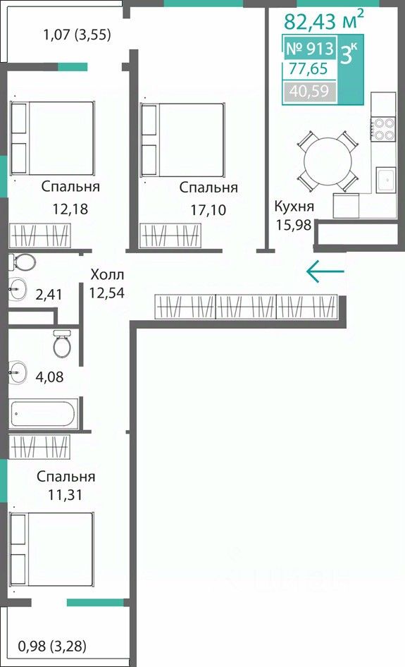 Продаётся 3-комнатная квартира в строящемся доме (Этап 1), срок сдачи: I-кв. 2028, общей площадью 77.65 кв.м., на 9 этаже. Новый жилой комплекс от ГК ''Монолит'' по адресу: Республика Крым, Симферополь, улица Святителя Гурия