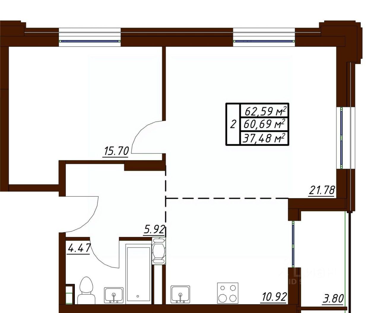 Общая площадь62,59 м2
