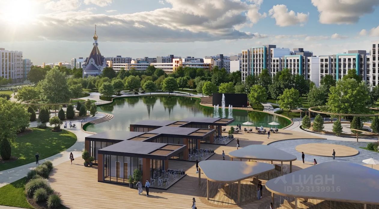 Представьте: не просто дома, а целый городской квартал с паркингами, торговыми галереями, аквапарком, детскими и спортивными площадками мирового уровня, ландшафтными парками, аллеями и даже Храмом.