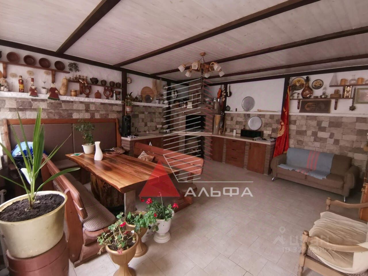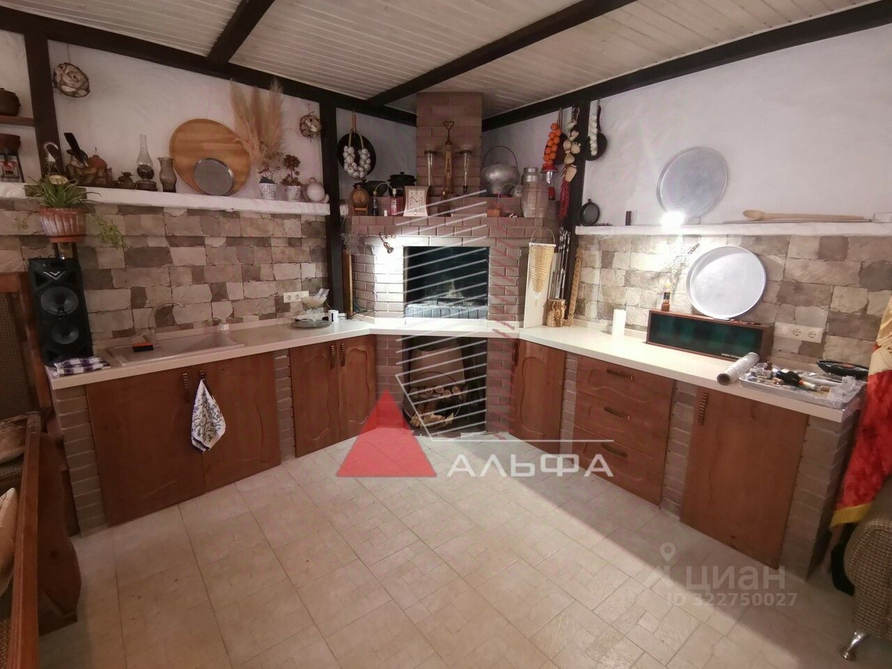 На 1 этаже: санузел, кухня студия , комната и крытая зона барбекю с камином.