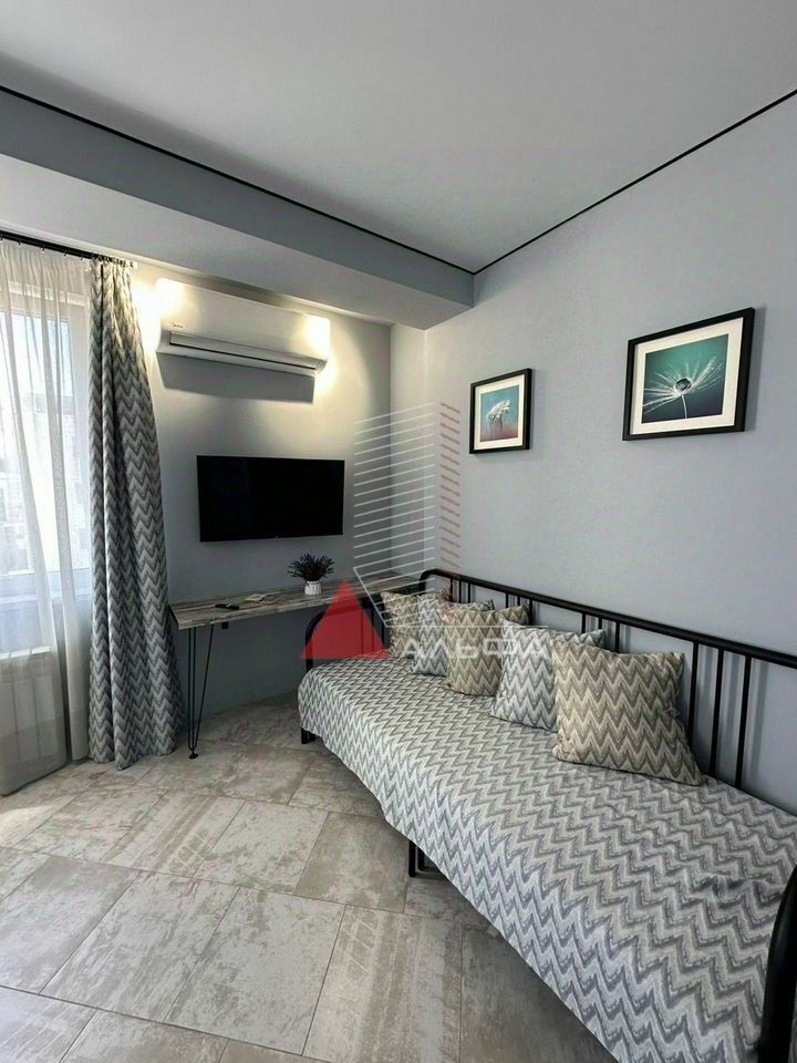 В квартире сделан дизайнерский ремонт, Квартира представляет собой гостинную с зоной кухни и отдельную спальню.
