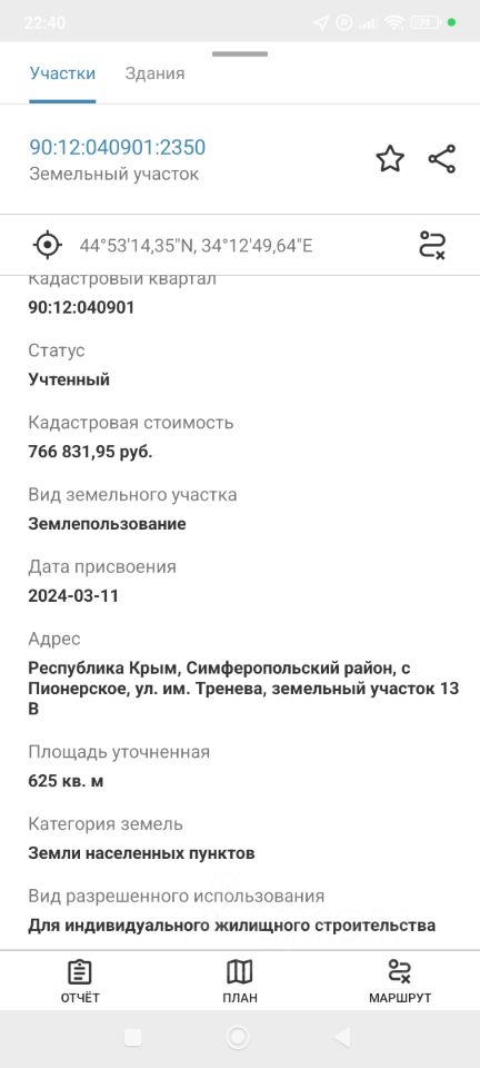 Продаётся участок 6,25 сотки ИЖС в с. Пионерское, ул. Тренёва 13 В. Участок ровный, расположен в активно застраиваемой жилом массиве. Электричество и газ проходят по улице. Документы РФ, межевание сделано. Кадастровый номер 90:12:040901:2350.