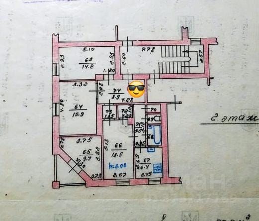 Квартира очень большая и просторная засчет высоких потолков. Три комнаты изолированные , одна проходная . Широкая , квадратной формы прихожая.