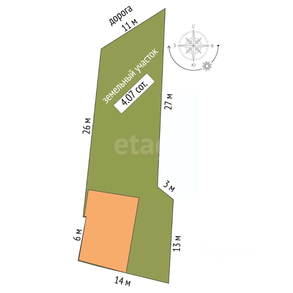 Участок 4,07 соток с назначением ИЖС, ровный. Посажен фруктовые деревья .
