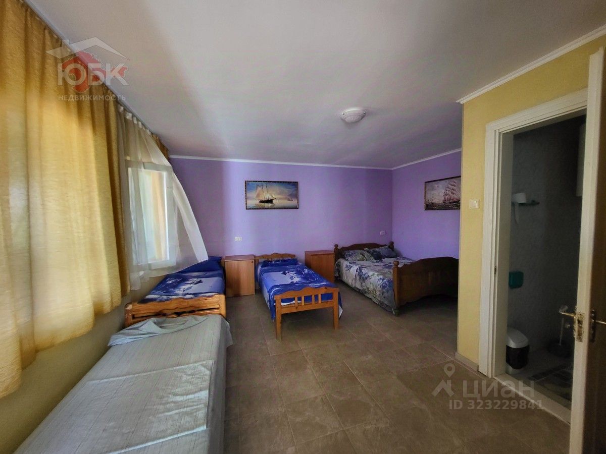Республика Крым, пгт Черноморское. Продается дом у моря. Готовый бизнес, отель рабочий, есть клиентская база. Отель состоит из 2х корпусов. В отеле 24 готовых номера с санузлами (10 трехместных, 5 четырехместных, 5 пятиместных, 4 двухкомнатные шестиместные апартаменты с собственными кухнями)+ большая комната для персонала на 5-6чел. Также на территории есть небольшой продовольственный магазин работает круглый год, прачечная, складское помещение (20кв.м), кухня со всей посудой(20кв.м), столовая (30кв.м), дополнительно на улице 2 туалета и 2 душа, кладовая для инструментов. На территории есть беседки на 30 чел. с уличной мебелью, мангальная зона, фонтаны, стационарный бассейн с системами фильтрации воды, самоочистки. Территория заложена плиткой, есть зелёные зоны, высаженны юкки, туи, можжевельники, имеется асфальтированная парковка на 20 мест. На кухне газовые плиты. Вода городская, также есть скважина с мощным насосом. В номерах есть отопление, тёплый пол (от газового котла). Подача горячей воды частично от газового котла, частично от бойлера. Вода, свет без перебоев, высокоскоростной интернет. Документы РФ все готовы. Земля и дом в частной собственности. Возможность прописки. Звоните!!!