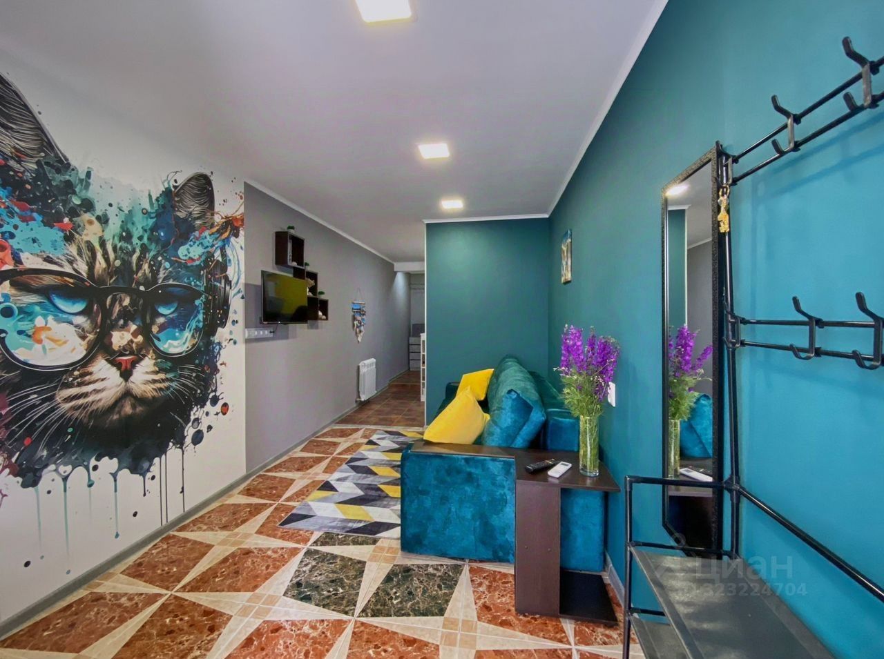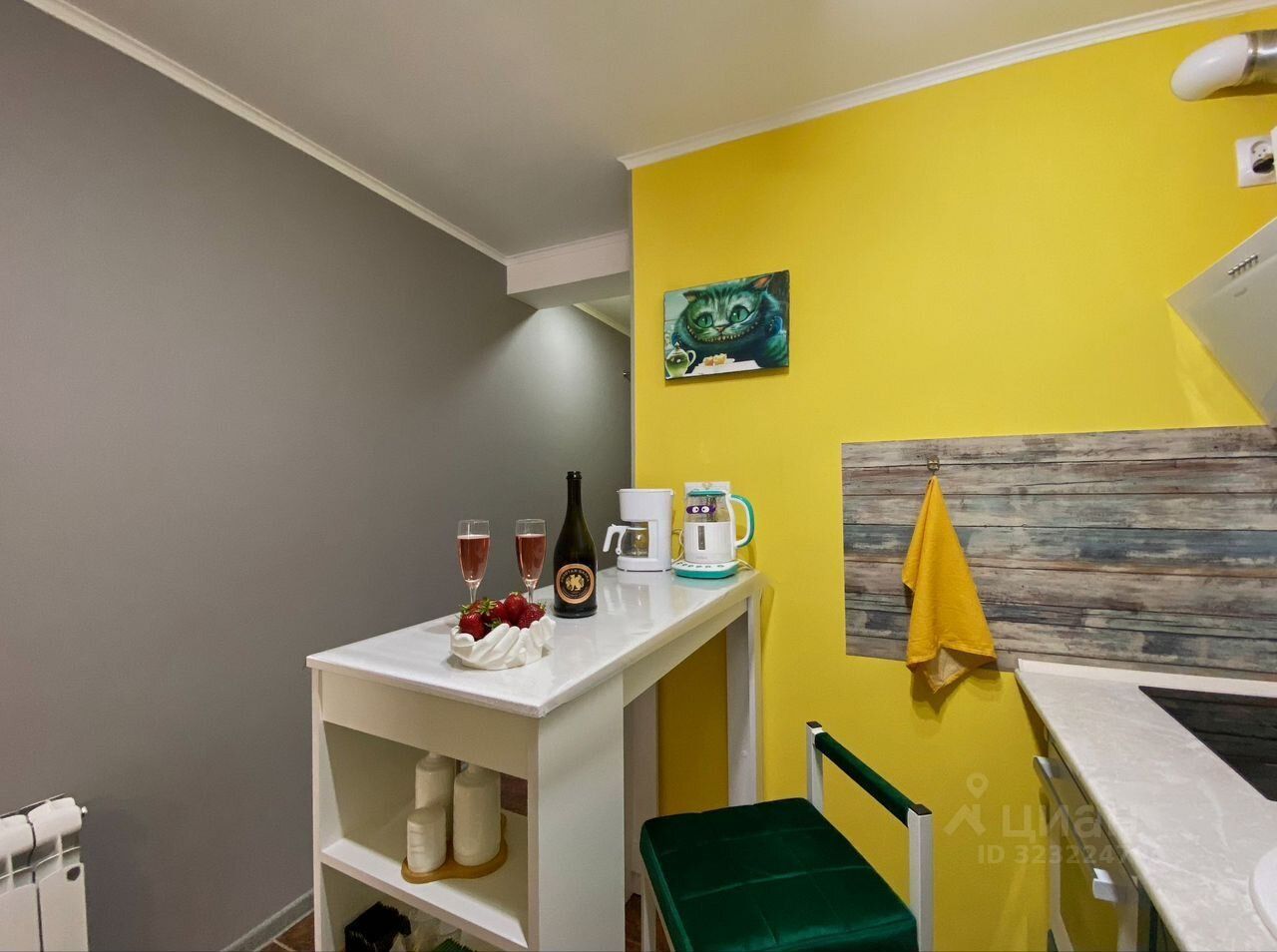 Площадь апартаментов — 24,1 м². Уютная студия, полностью укомплектована мебелью и техникой — всё остаётся новым владельцам.