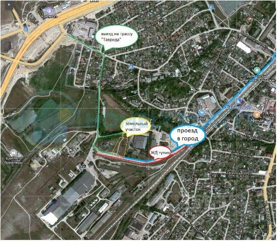 Транспортная доступность и инфраструктура: — Железная дорога: На границе участка действующий железнодорожный тупик протяженностью 500м, примыкающий к станции ''Бахчисарай'' (Код ЕСР 85720). Возможно круглогодичное использование на постоянной основе. — Автомобильные дороги: Асфальтированный въезд на участок с двух сторон (со стороны ЖД путей и со стороны КТП). Асфальтированный выезд на трассу ''Таврида'' (700м) и в город. — В шаговой доступности: Остановка общественного транспорта, железнодорожная станция, рынок, строительные базы, магазины, СТО, АЗС, АГЗС (в пределах 300-500м).