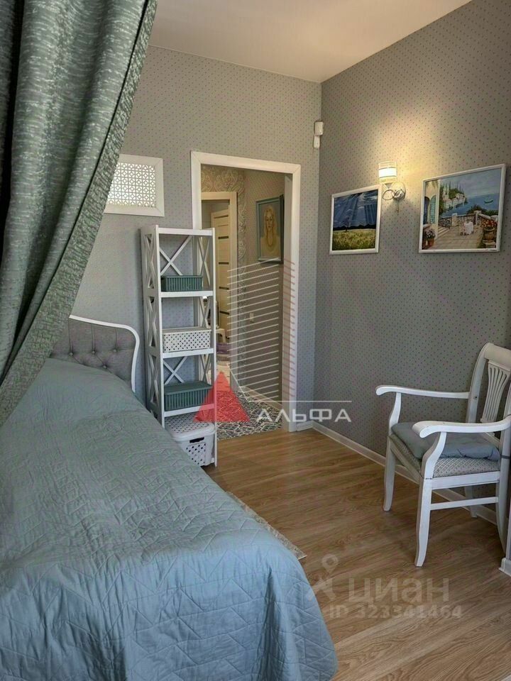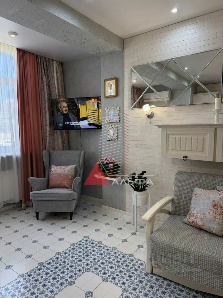 В квартире сделан ремонт в светлых тонах, межкомнатные стены из ракушечника, теплый пол у окон, по всей квартире керамическая плитка, в спальне ламинат. Большие окна в спальне и кухне-гостиной делают квартиру еще более просторной и красивой.В квартире встроенная кухня с буфетом. В коридоре находится вместительный шкаф и зеркалом, есть гардеробная со шведской системой хранения! В квартире есть кондиционер, стиральная машина, водонагреватель