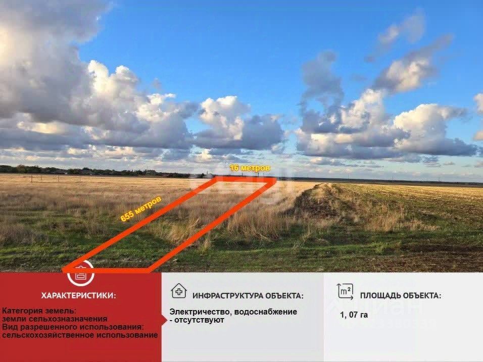 Продается земельный участок сельскохозяйственного назначения площадью 1.07 га.